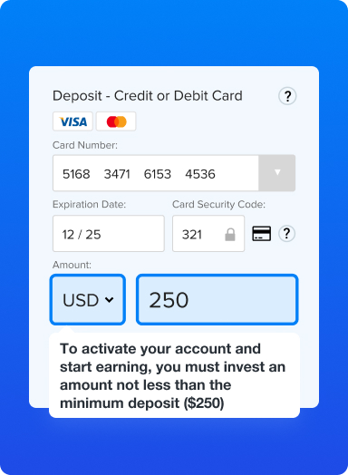 Inizia a utilizzare la piattaforma investendo almeno $250. Segui le istruzioni sullo schermo per completare il processo.